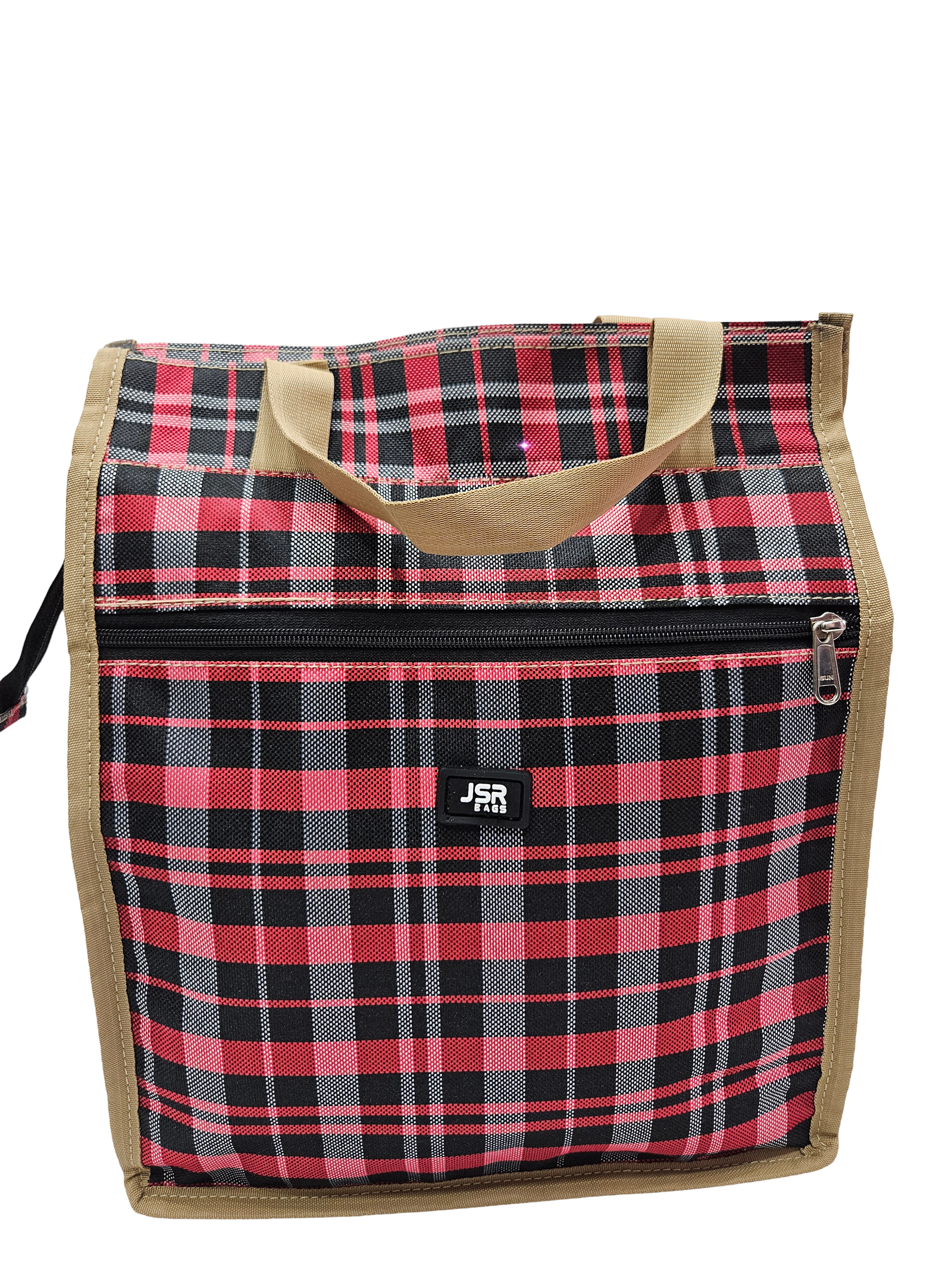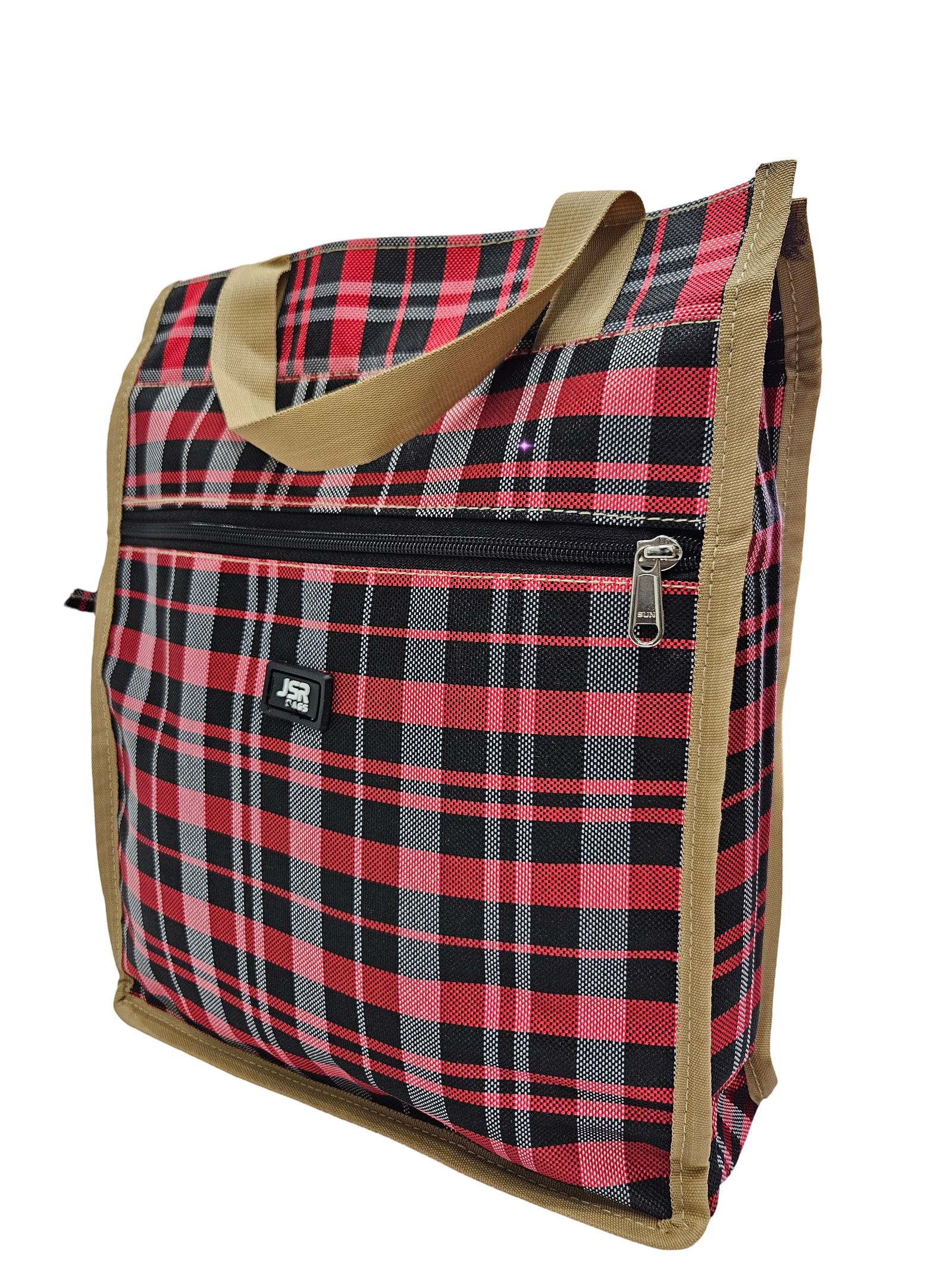 This elegant and practical handbag is designed for everyday use, featuring a classic red and black checkered fabric pattern with beige trim for a timeless look. Made from high-quality, durable fabric, it is lightweight yet sturdy enough to carry books, groceries, or personal essentials.